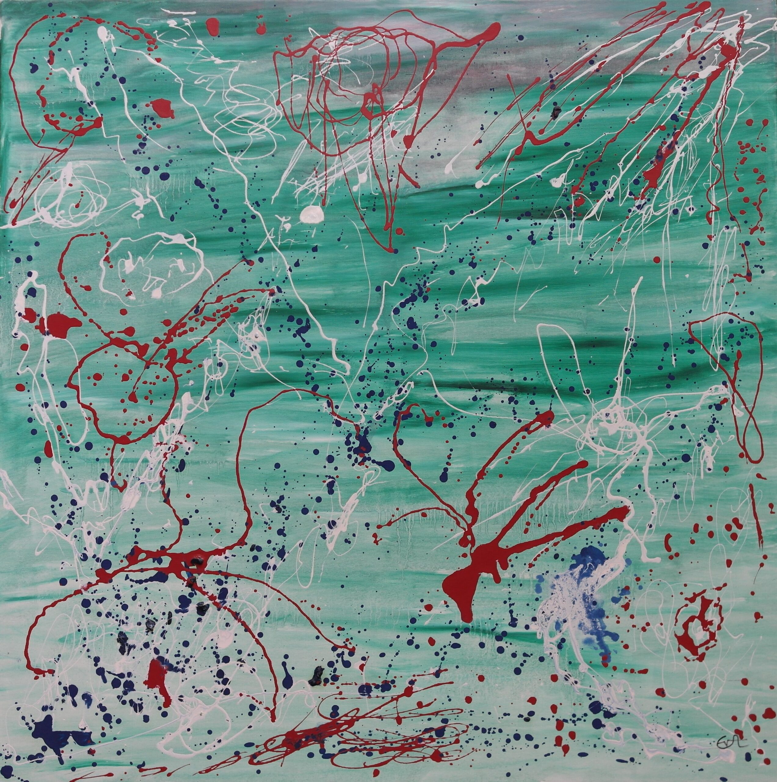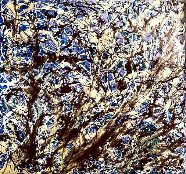 Because Eva doesn’t just mourn for all the trees we have lost. Spreading her feelings onto earth is not enough for her. She does more than that. She talks about it. She paints. She lets drips of paint fall on the canvas and they replace her tears and sorrow.