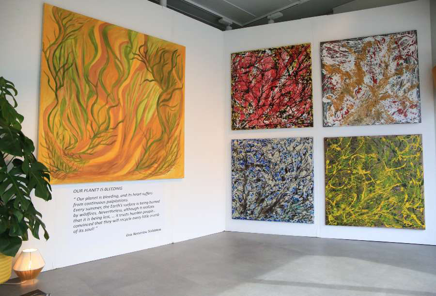 Because Eva doesn’t just mourn for all the trees we have lost. Spreading her feelings onto earth is not enough for her. She does more than that. She talks about it. She paints. She lets drips of paint fall on the canvas and they replace her tears and sorrow.