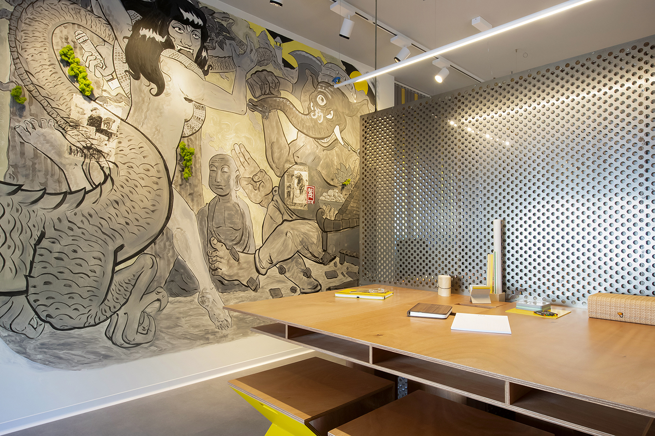 In November 2019, the house of Elephant Design had just welcomed its residents. The large empty wall was there waiting for the artist who would capture the whole philosophy of the name and the idea related to the real characteristics as well as the symbolic values of the charming mammal.